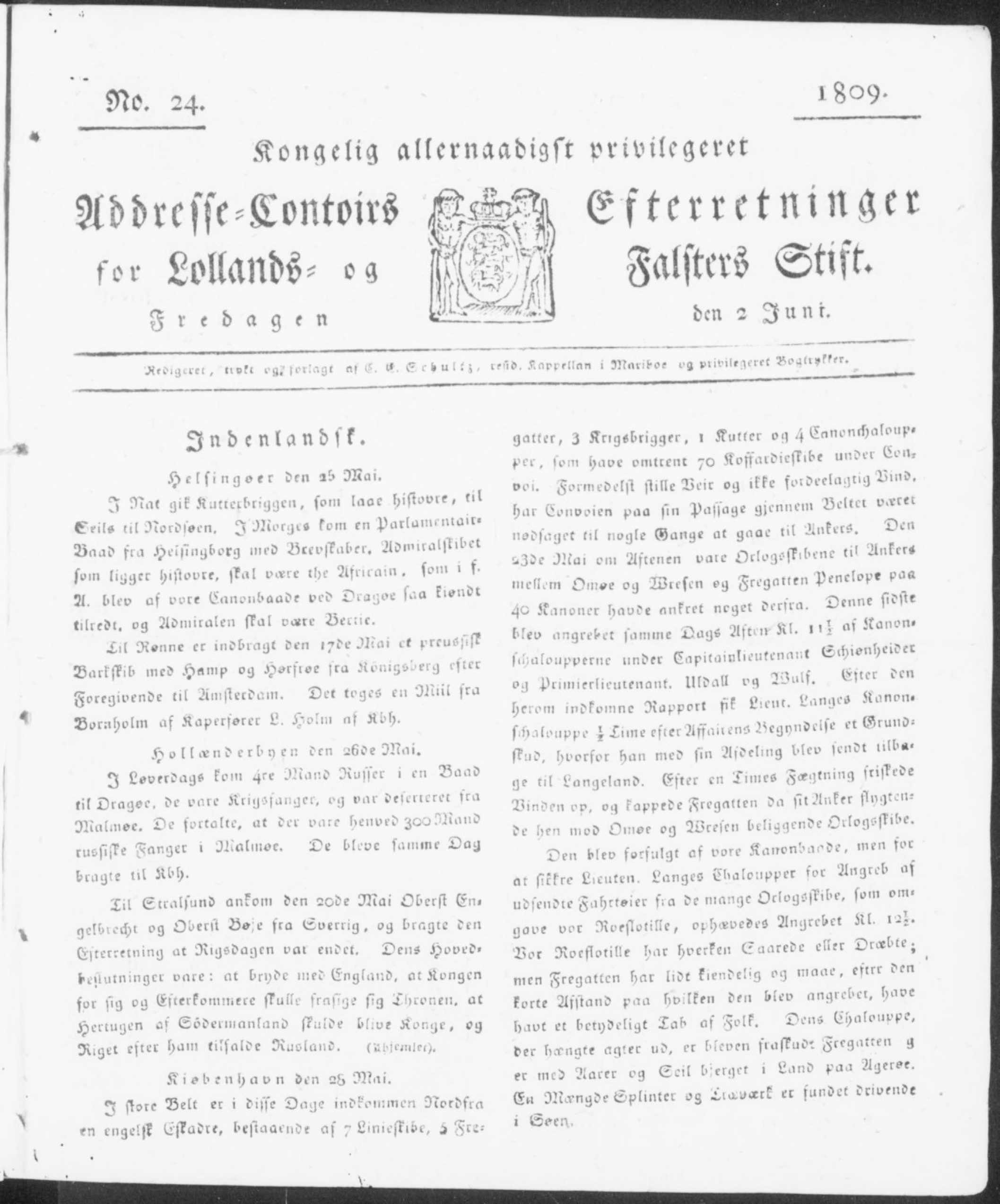 Den 23. maj om aftenen var orlogsskibene ankret mellem Omøe og ?. Fregatten Penelope på 40 kanoner havde ankret noget derfra.